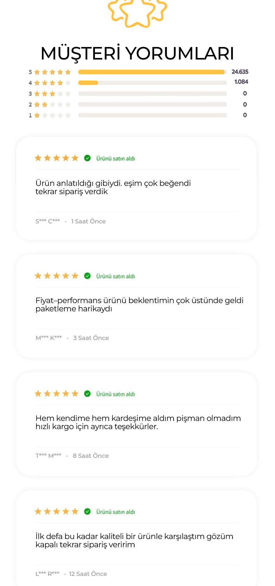 Siparişinizi verdikten sonra 24 saat içinde (bayramlar ve haftasonu hariç) teyid için tarafmızdan aranacaksınız. Sipariş onayından sonra aynı gün ürünler kargoya teslim edilir. 1-3 iş günü içerisinde de size teslimatı yapılır.